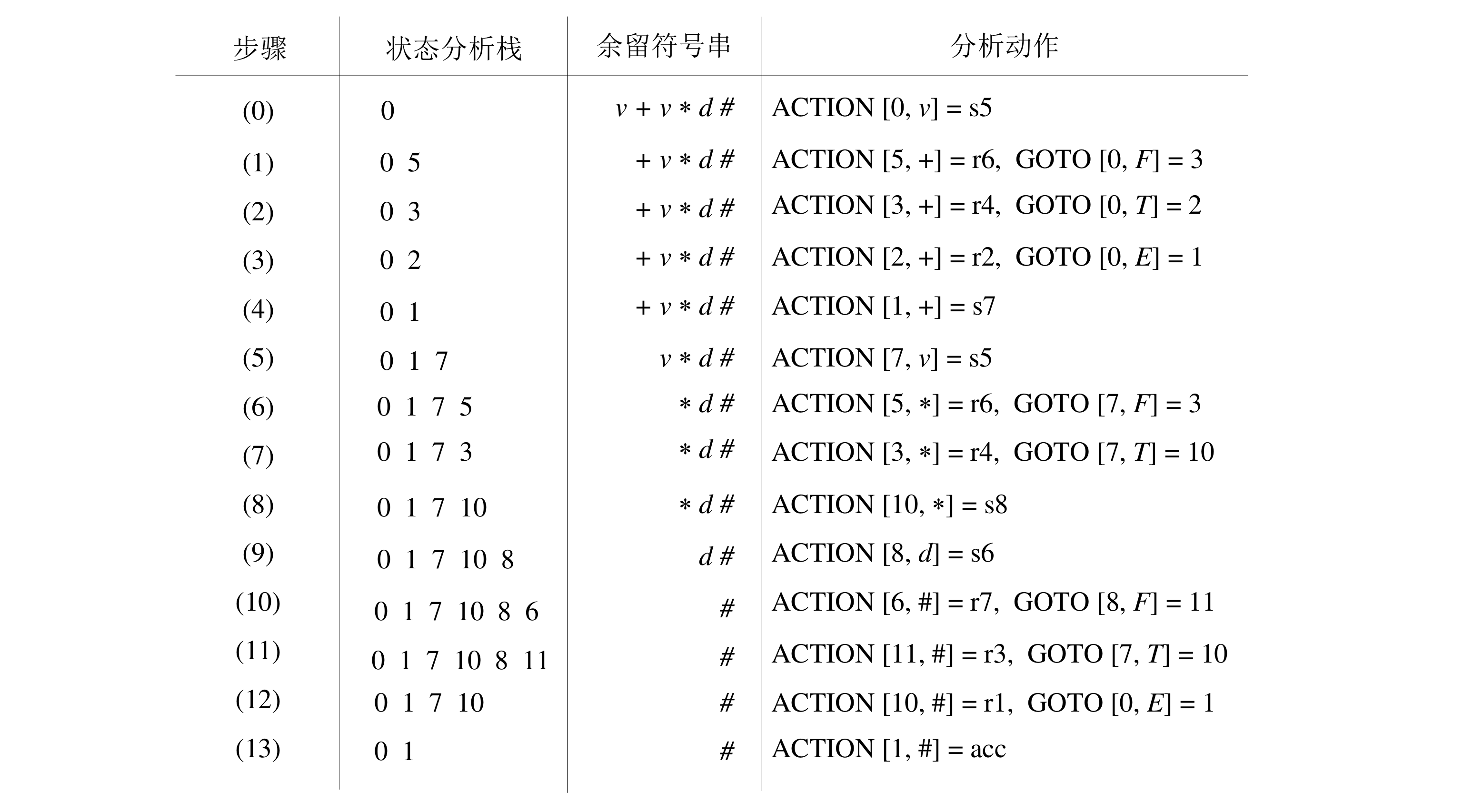 GOTO 表:对 V_N,在转移弧上的状态 (k, j),对该 V_N 列设置转移到状态 j。