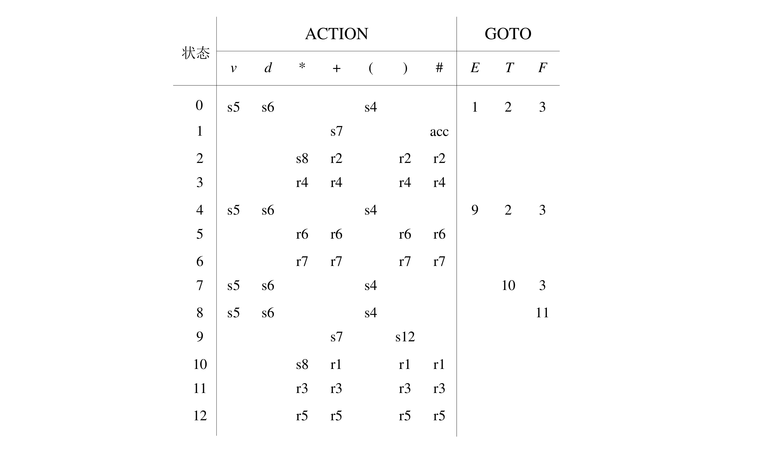 - 有归约项目:对 所有 的 V_T 列设置为归约时使用的产生式 m(rm)。