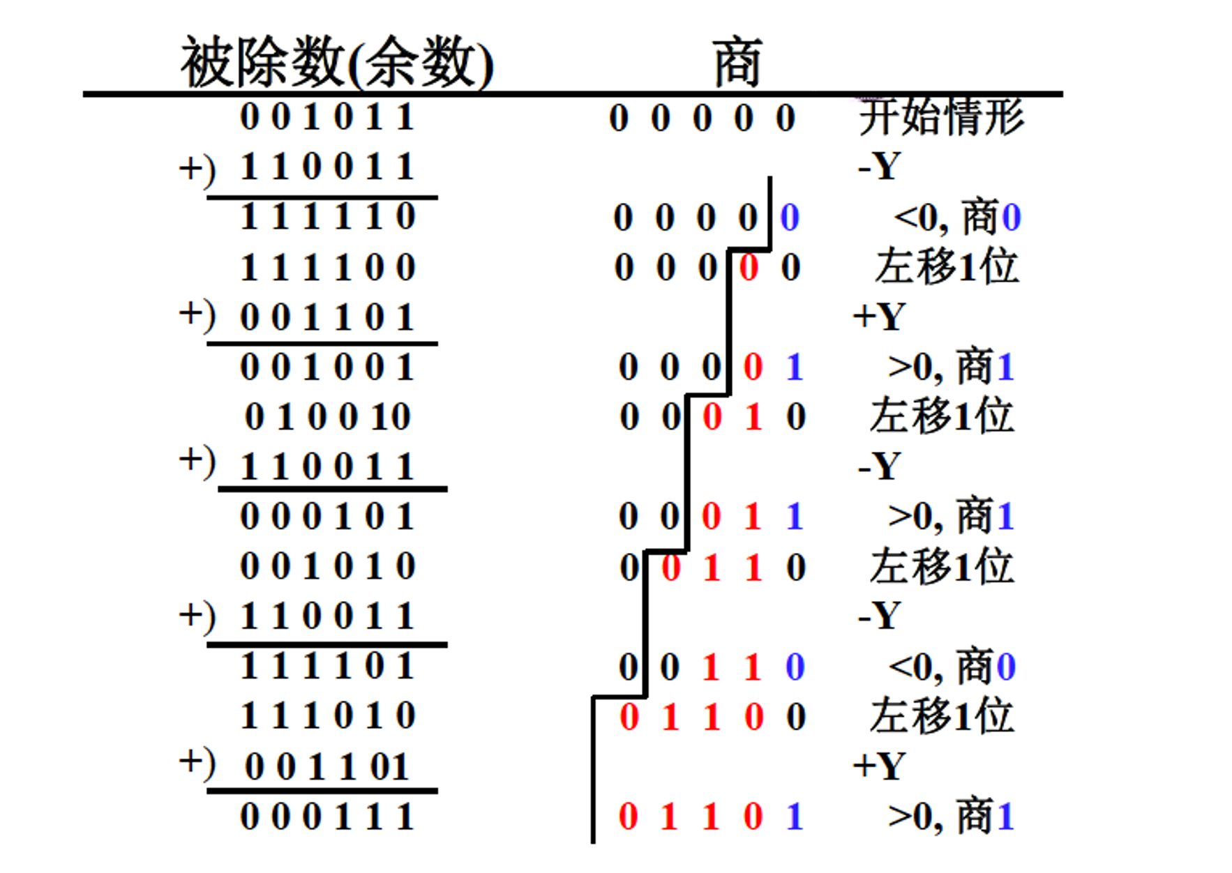 若上次减运算结果为负,可直接左移,本次用 +Y 即可,如果减运算结果为正,用 -Y 求余。