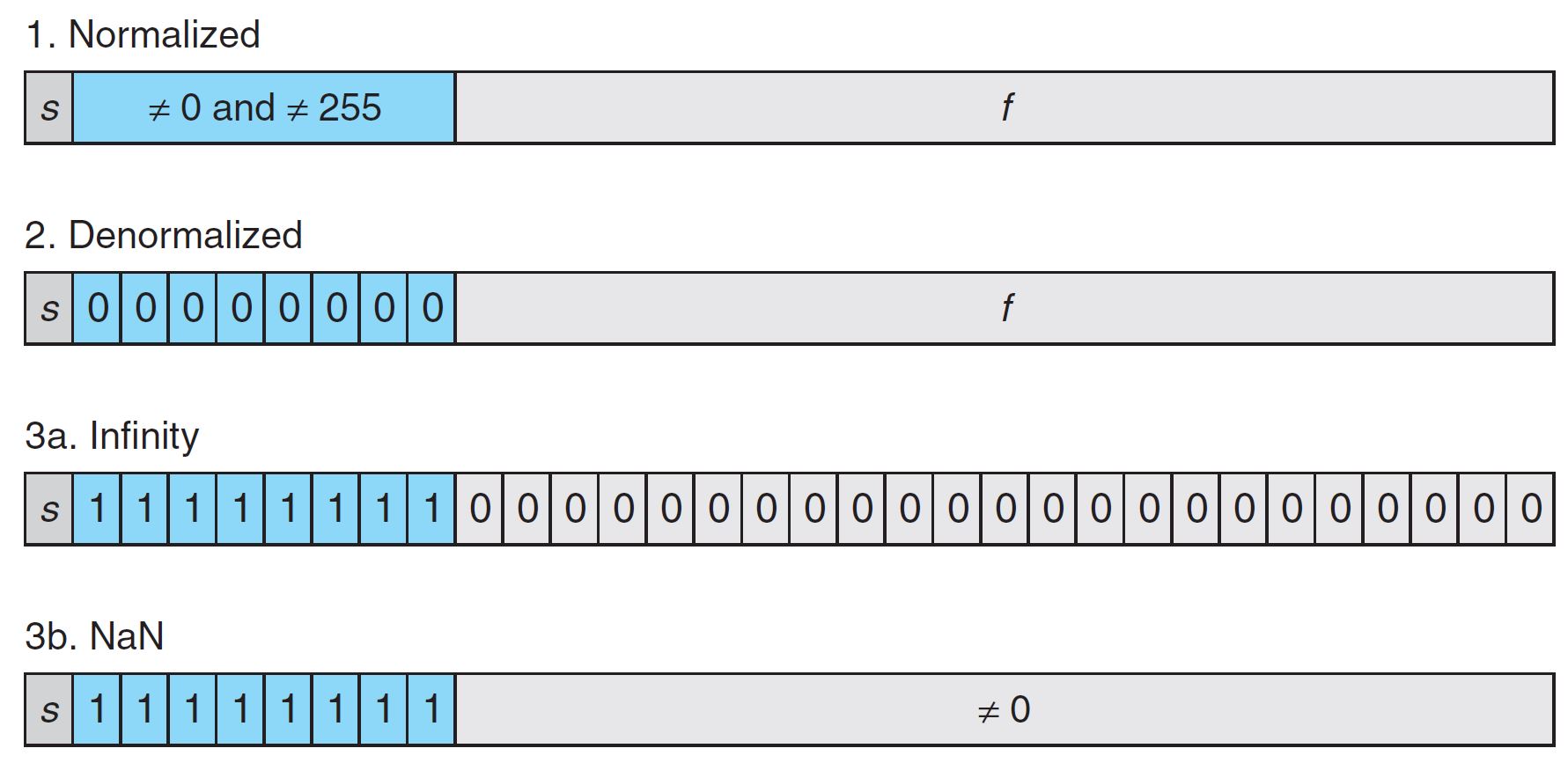 - \text{exp} = 11 \dots 1, \text{frac} \neq 0:\text{NaN}
