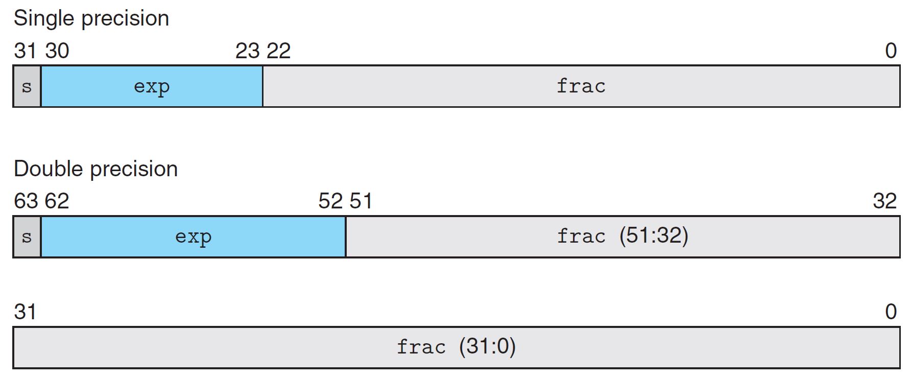 exp域的位数(float: 127, double: 1023) frac域的第一位隐含1,因此第一位的1可以省去- 00\dots0(M = 1.0) - 11\dots1(M = 2.0 - \varepsilon)