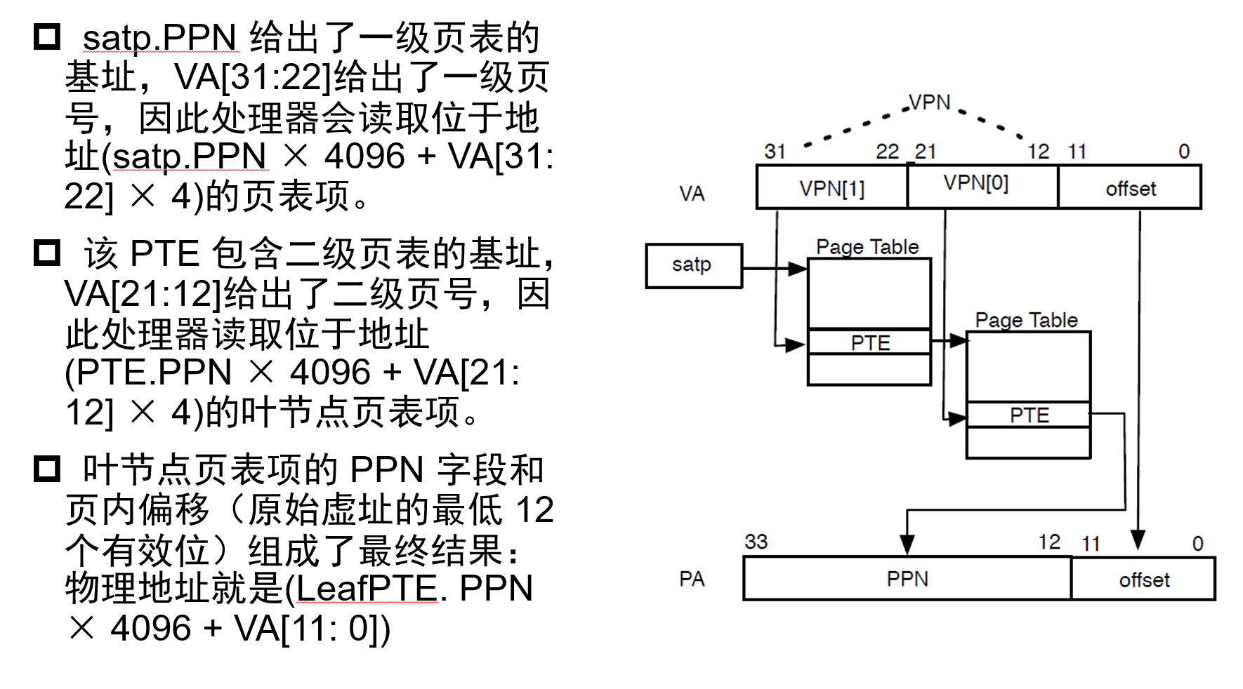 TLB 缺失将造成:流水线停止、通知操作系统、读页表、将表项写入 TLB、返回到用户程序并重新访问。