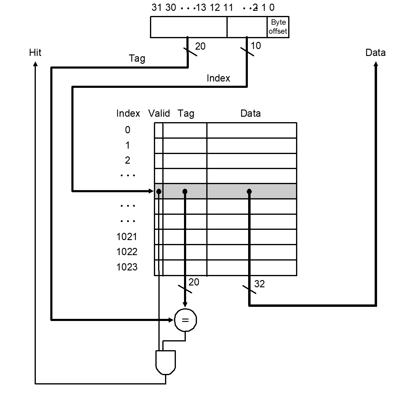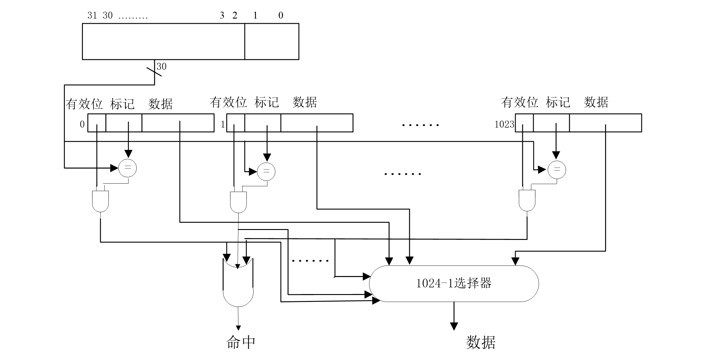 - cache 4KB,块大小 4B => 1024 组,set index 位数 10。
