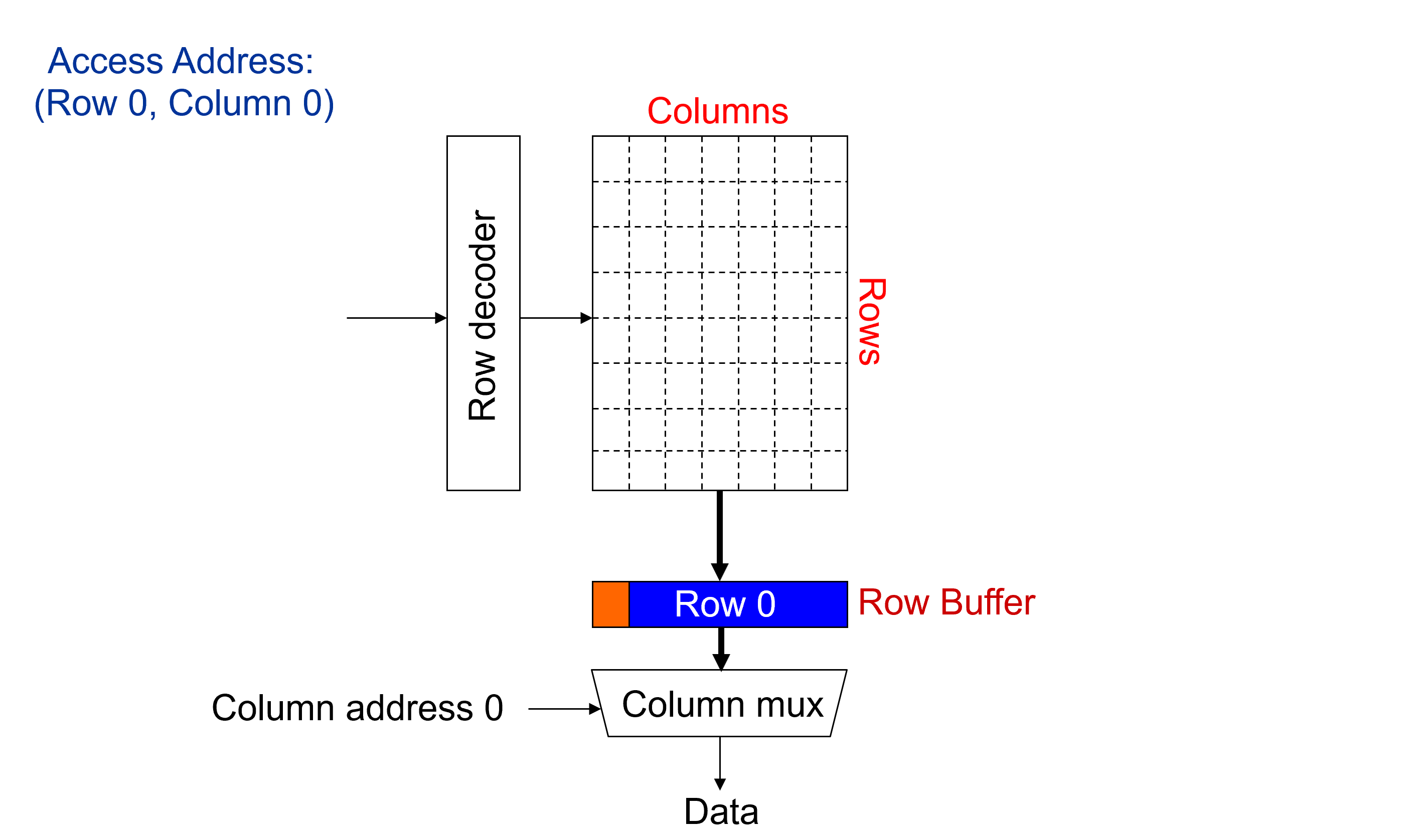 读取 DRAM 次序如下,因此行列地址需要分两次送(如果缓存命中则不需要送列地址)。