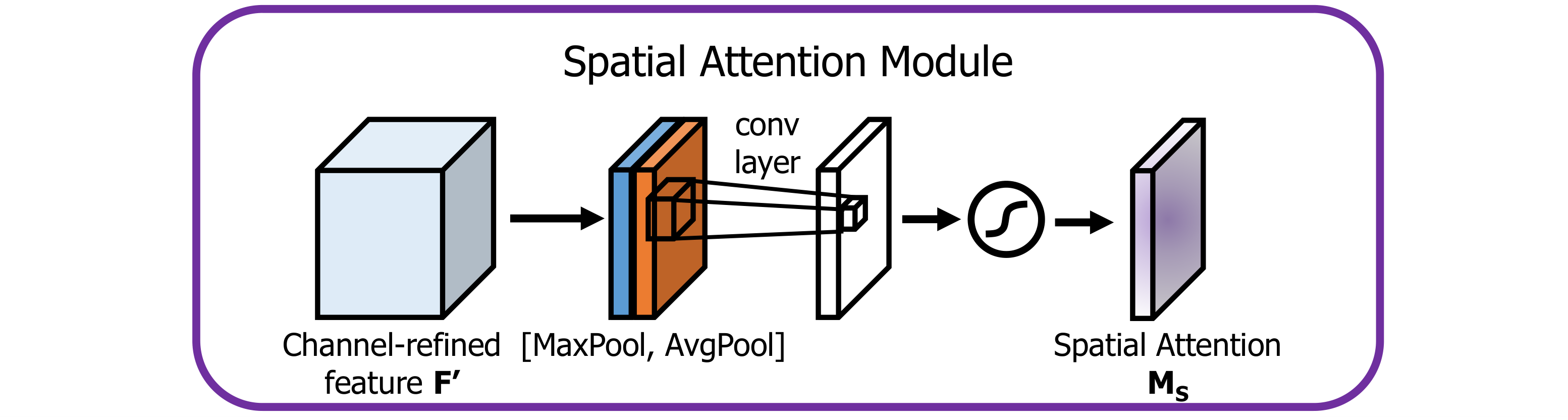 \mathbf{M}_c(\mathbf{F}) = \sigma(\text{MLP}(\text{AvgPool}(\mathbf{F})) + \text{MLP}(\text{MaxPool}(\mathbf{F})))