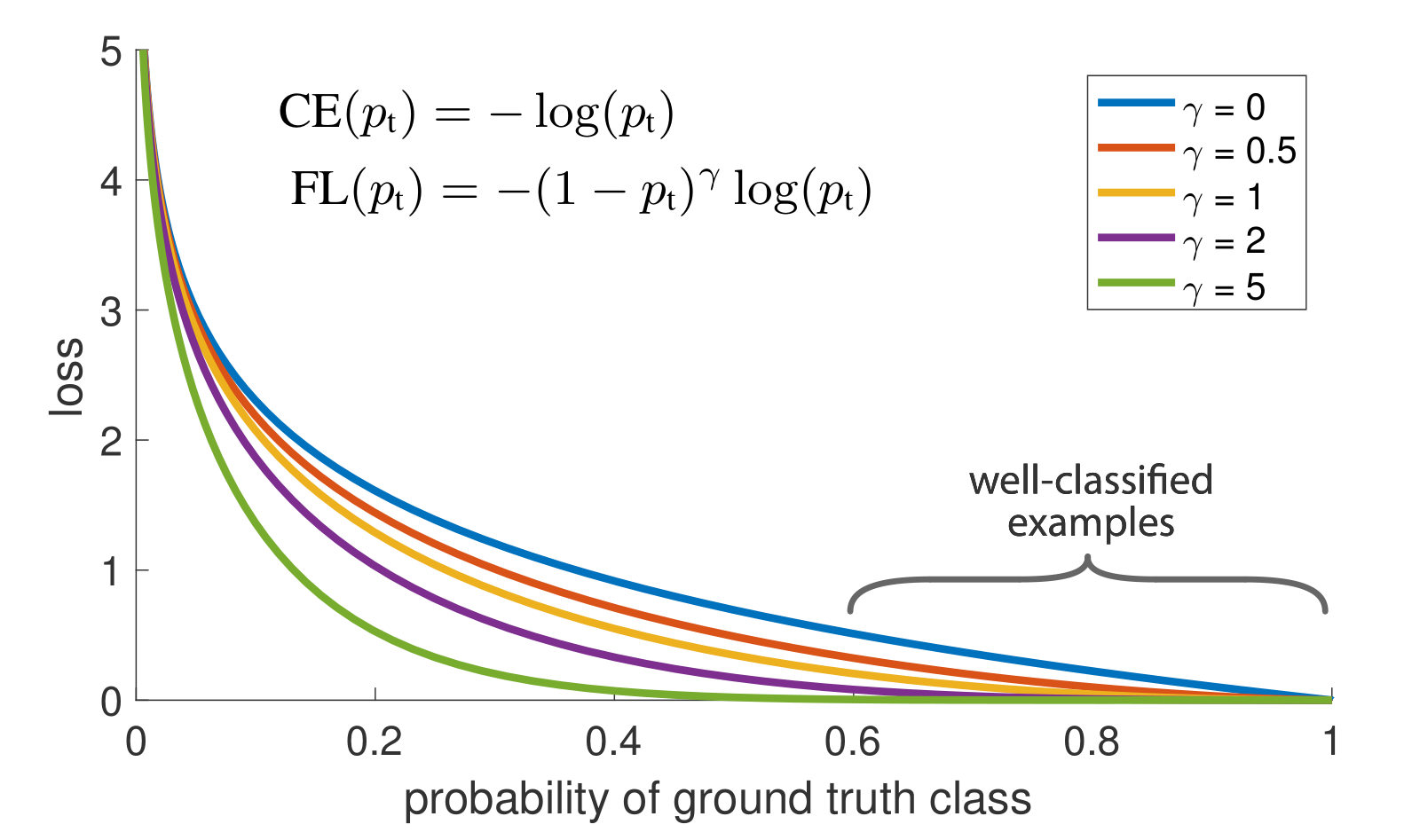 - 参数 \gamma 可平滑调节 down-weight 的力度。